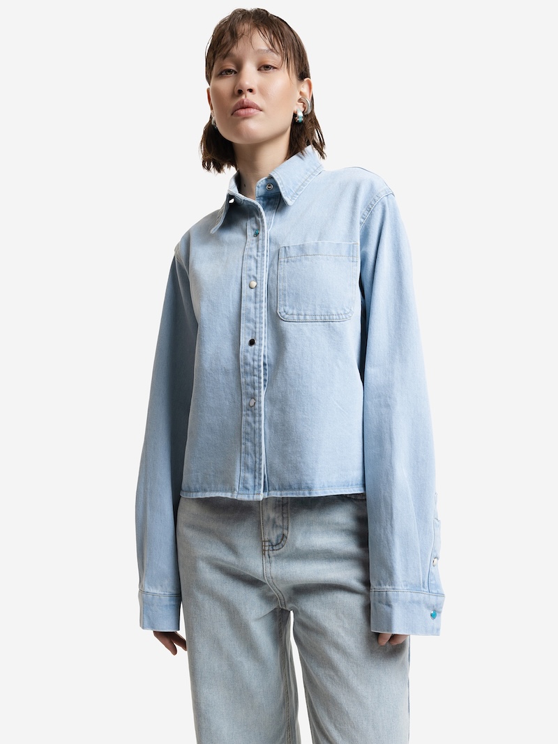 Джинсы BoyfriendРубашка из плотного денима, голубой