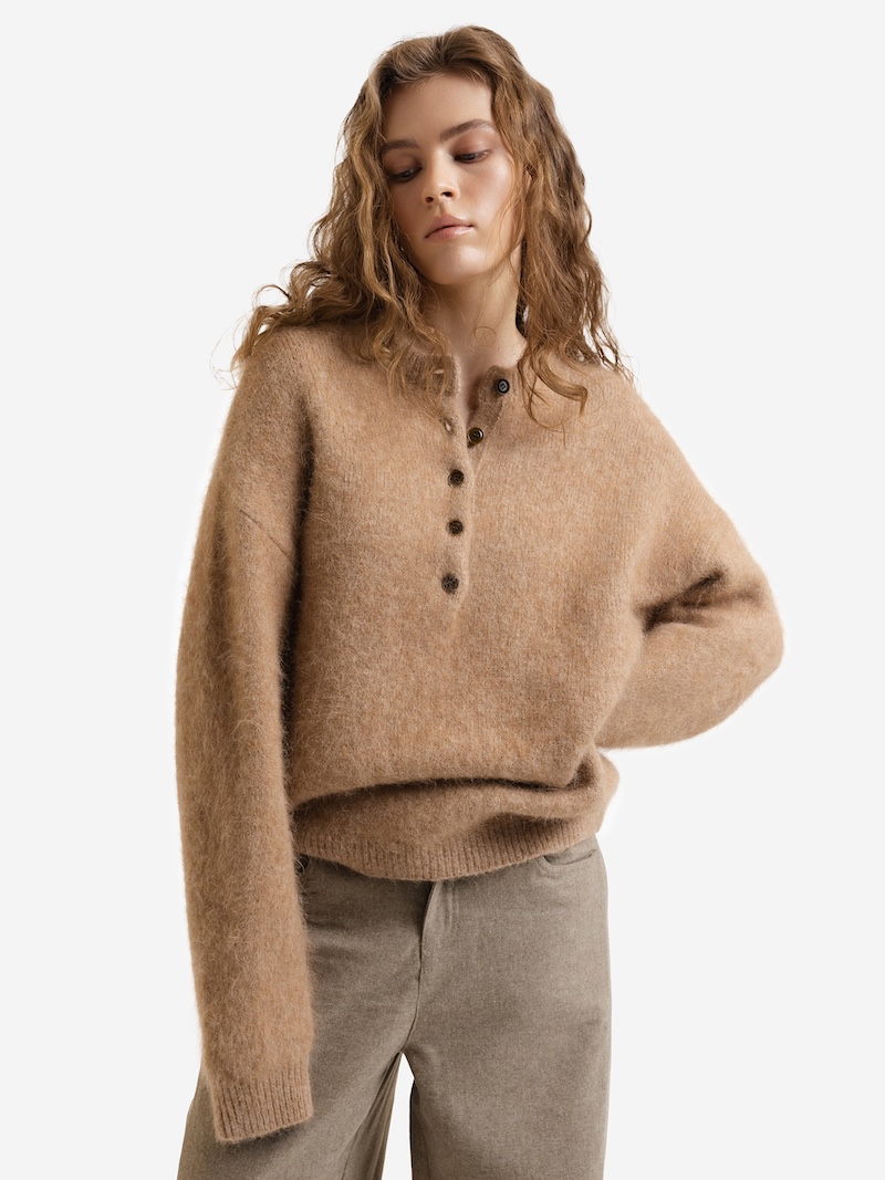 Джемпер из альпаки на пуговицах, карамель