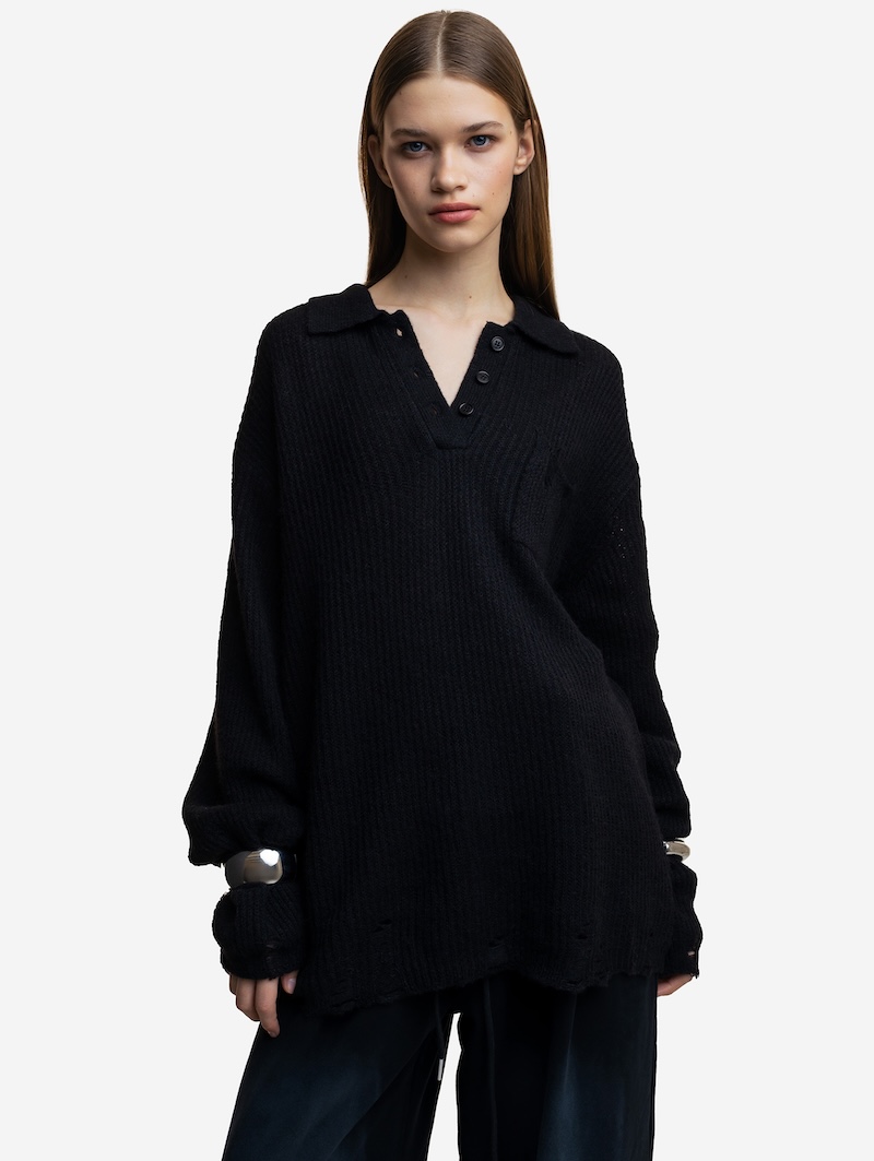 Поло из шерсти, черный
